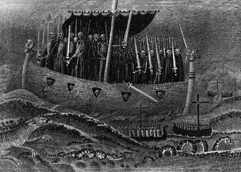 The other interestingly NorsePlay'd visual choice here is that the dead seem to be the giants compared to the scale of the opposing drakkar below, which raises the question of what happens in the long run when Thor & the other Aesir take out their jötnar enemies if they're only going face them again in the host of the dead when the end battle comes around.