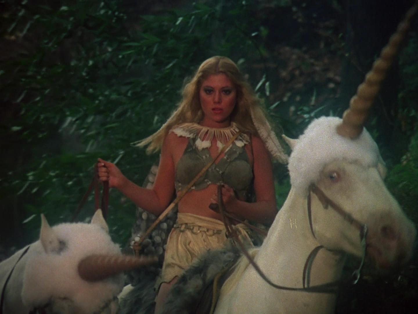 The fearless guerilla teen Kyle (Charles Bloom) confidently tells Colonial Warrior Starbuck that his siblings are a well-oiled army that've been successfully striking Cylon targets long before he gracelessly wrecked his Viper on their homeworld.On the planet Attila (which given the context just also happens to refer to the latter chapters of the Burgundian Song of the Nibelungs) Starbuck is rescued by the operatic clad martial family which includes young Valkyrie-esque vixen Audrey Landers as Miri, the eldest daughter: